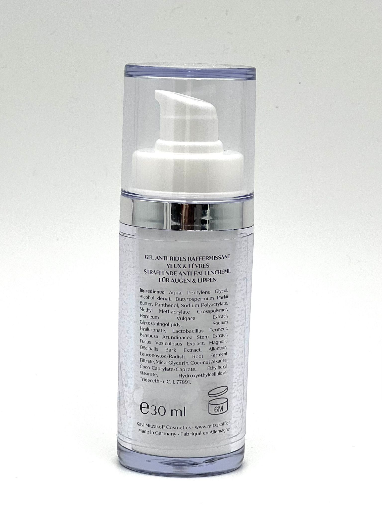 Morgens und abends nach der Gesichtsreinigung (z.B. mit LAIT DÉMAQUILLANT oder MOUSSE NETTOYANTE von Kayi Mitzakoff) und Tonisierung ein bis zwei Pumpstöße auf das Gesicht auftragen und sanft einmassieren. Anschließend Tages- oder Nachtpflege verwenden. Perfekt als Make-up-Unterlage geeignet.