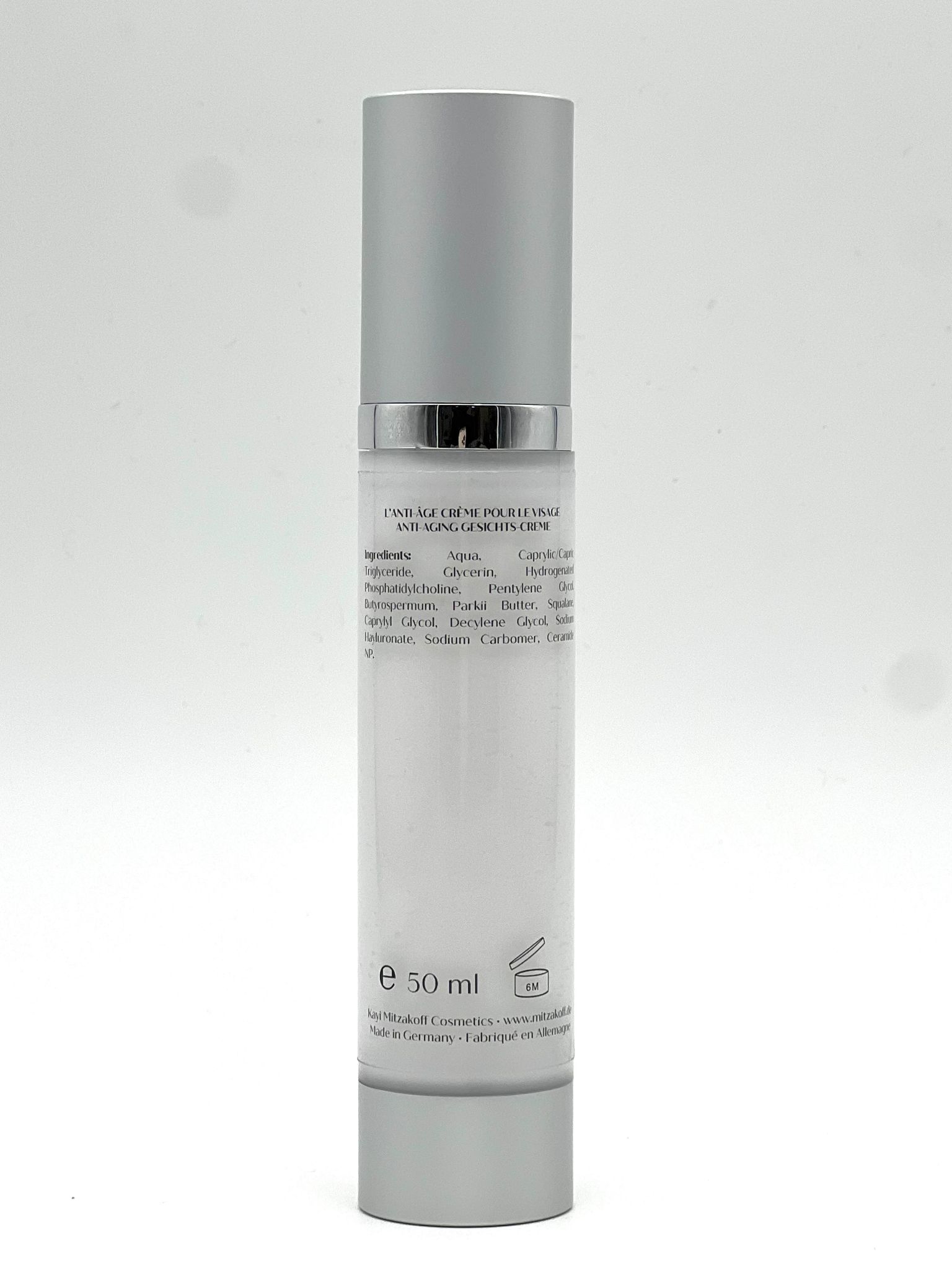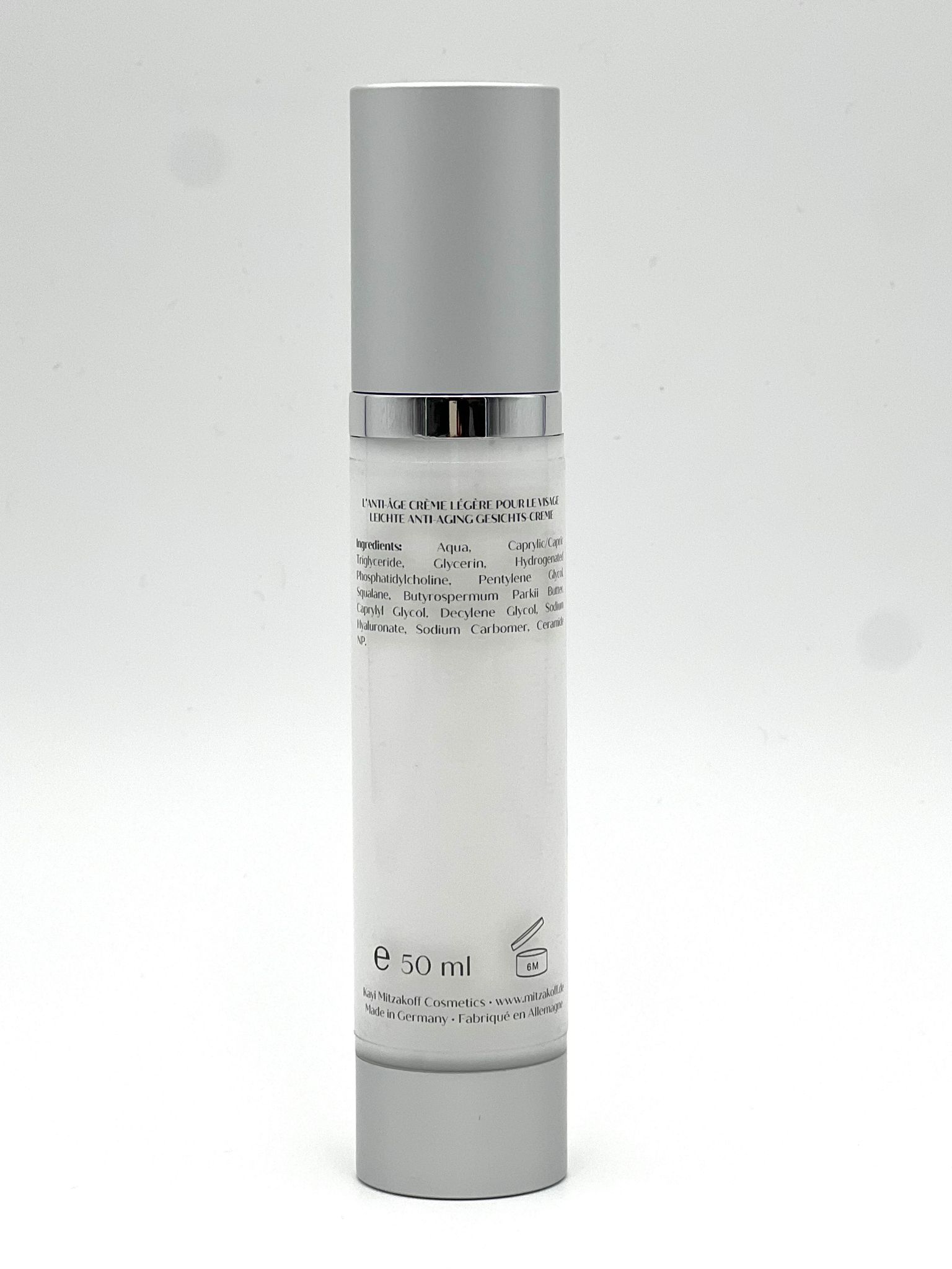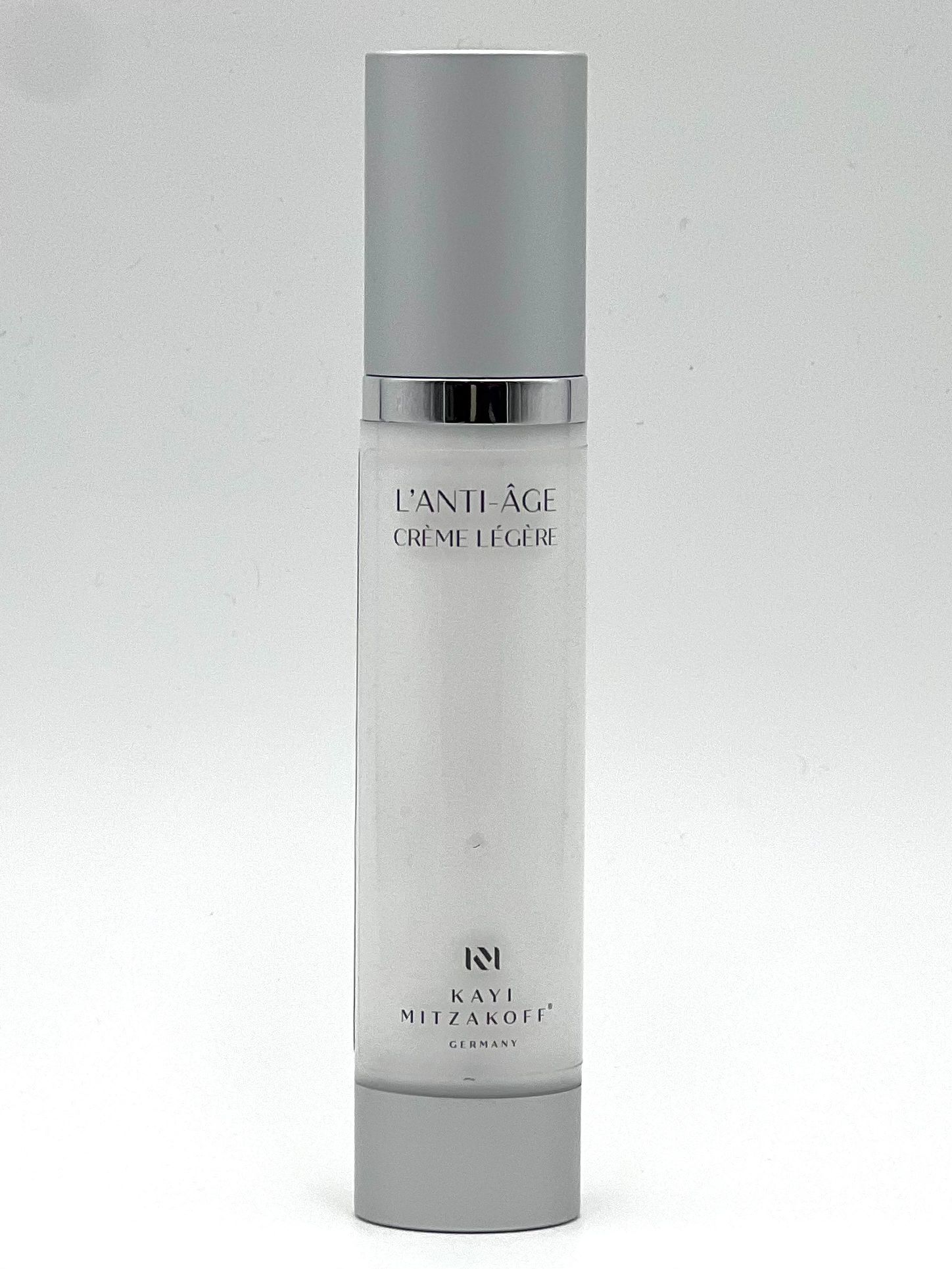 L’ANTI-ÂGE CRÈME LÉGÈRE von Kayi Mitzakoff – leichte Anti-Aging Creme zur Zell-Wiederbelebung, speziell für fettige und sensible Haut. Sorgt für geschmeidige, revitalisierte Haut ohne zu beschweren. Dermatologisch getestet, parabenfrei und tierversuchsfrei.