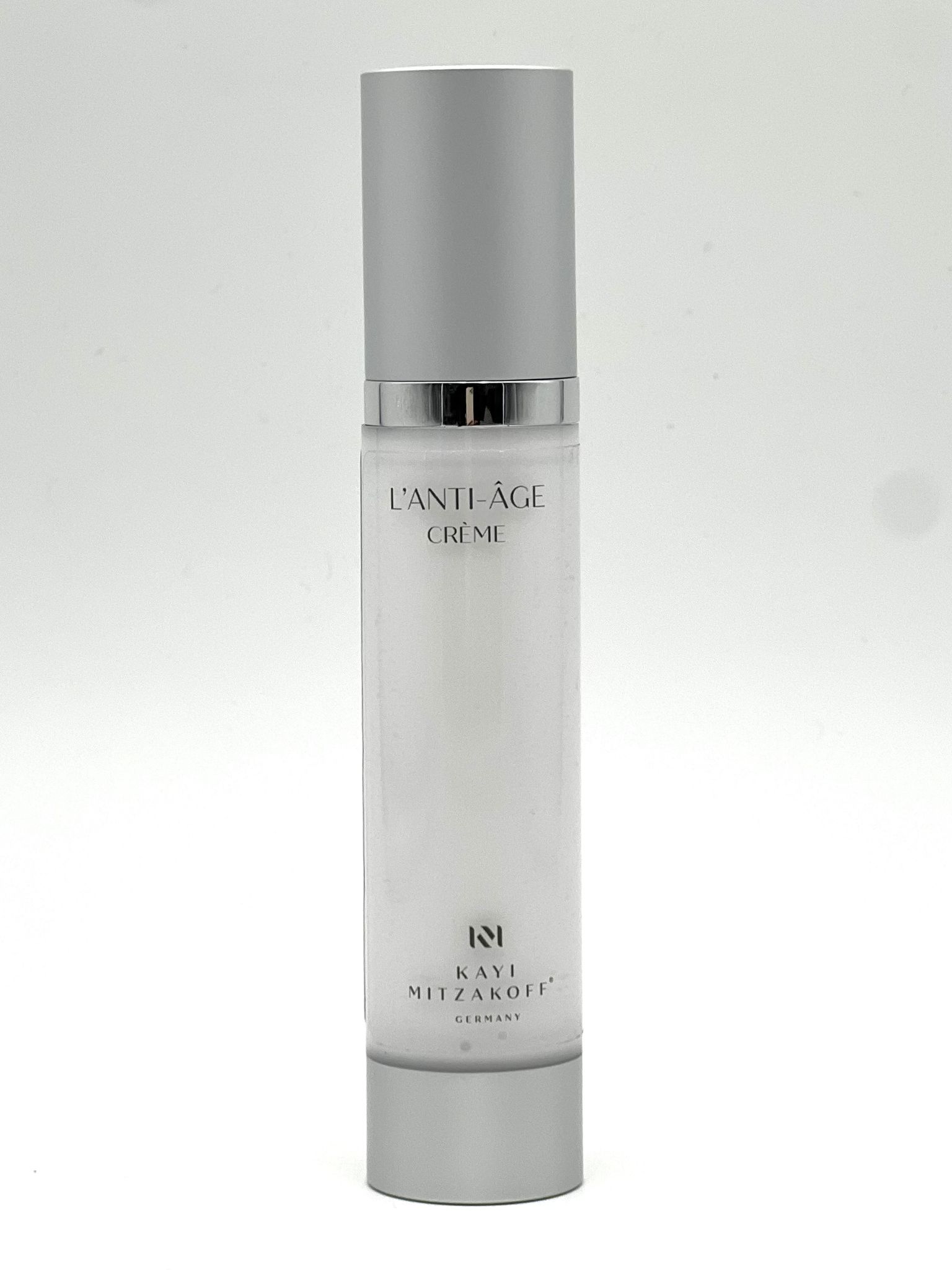 L’ANTI-ÂGE CRÈME von Kayi Mitzakoff – zellschützende Anti-Aging Creme mit ausgewogener Pflegeformel für normale bis leicht fettige Haut. Stärkt die Hautbarriere, spendet Feuchtigkeit und sorgt für ein glattes, vitales Hautbild. Dermatologisch getestet, parabenfrei, tierversuchsfrei.