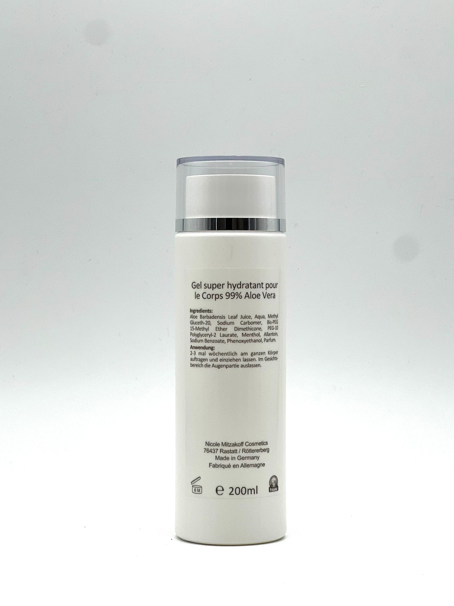 Erlebe puren Feuchtigkeitsluxus mit dem GEL SUPER HYDRATANT POUR LE CORPS 99% ALOE VERA von Kayi Mitzakoff! Dieses außergewöhnliche, fettfreie Körpergel besteht zu 99 % aus reinem Aloe Vera Pflanzensaft – einer der wirksamsten natürlichen Feuchtigkeitsspender der Welt. Die hochkonzentrierte Formel ist besonders sanft, zieht sofort ein, klebt nicht und hinterlässt ein unvergleichlich frisches, beruhigtes Hautgefühl.